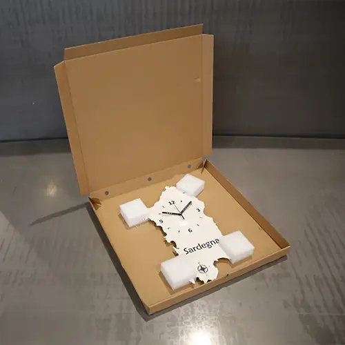 Imballaggio: Cartone / Tassello espanso – Orologio: alluminio (100% riciclabile).