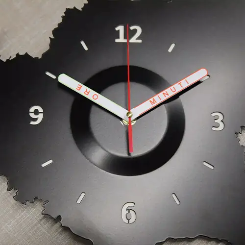 Installazione: Fissare l’orologio esclusivamente su pareti solide con tasselli a muro o ganci idonei alla superficie. Non utilizzare chiodi sottili o inadeguati, potrebbero danneggiare il prodotto o causare cadute. Evitare urti, cadute o pressioni sulla superficie. Uso interno. Il prodotto non è impermeabile; non esporre ad acqua, umidità o intemperie.